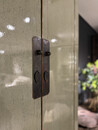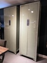 Oriëntaalse kast Bobby met hoogglans lak in Jade grijs - groene tint heeft twee mooie hoge paneel deuren, vier legplanken en is binnenin gebeitst in koloniaal bruin.
