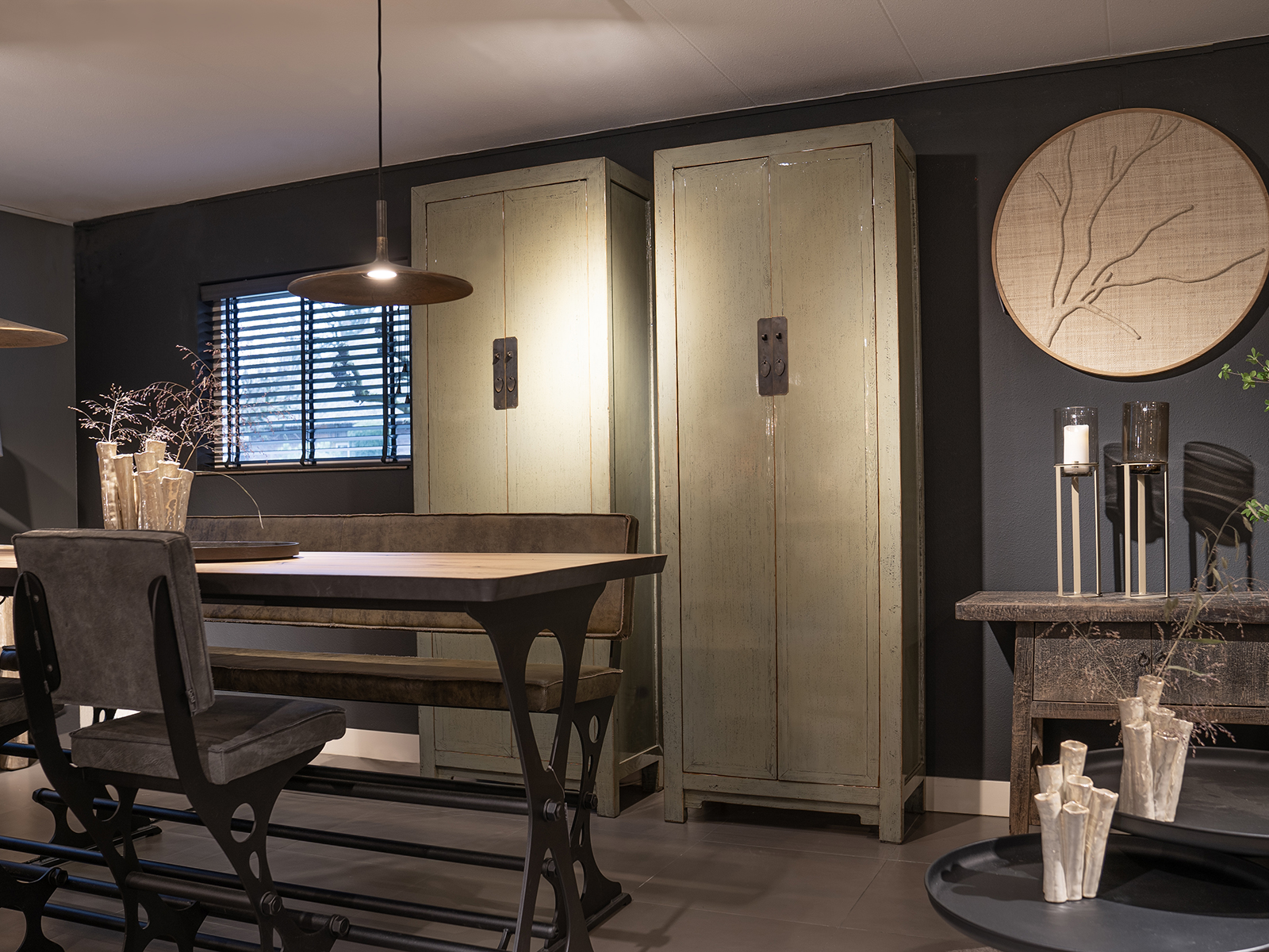 Raak geïnspireerd door antiek kasten uit China, gelakt in bijzondere kleuren en allen artisanaal met de hand vervaardigd.
